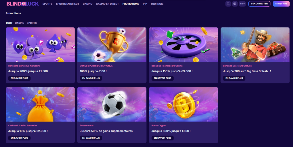 Le pack de bienvenue affiche 140 % de bonus dès 25 € déposés. L’offre semble massive. Mais notre BlindLuck avis reste lucide face à ces chiffres très clinquants.