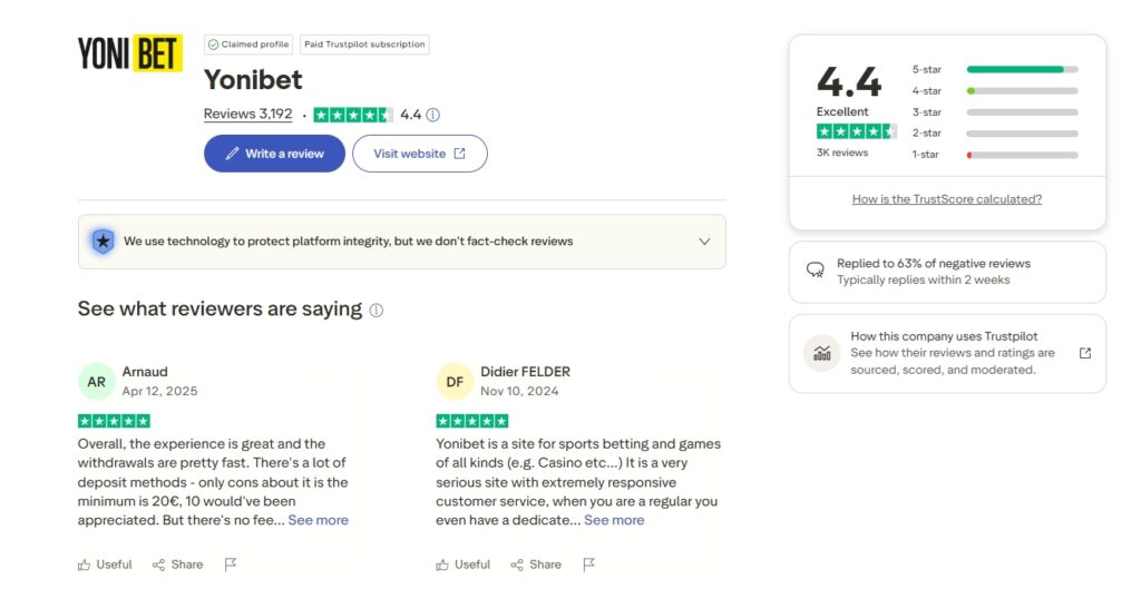 Ce qu’il faut retenir : Yonibet s’impose comme une plateforme hybride alliant sécurité et rapidité transactionnelle record. L’opérateur garantit une expérience de jeu hautement rentable grâce à des bonus sans wager et des cotes sportives agressives. Sa fiabilité est confirmée par une note Trustpilot de 4,4/5 et des retraits crypto validés en moins de deux heures seulement.